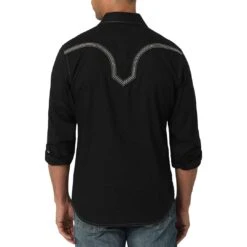 Wrangler Men’s Rock 47 Embroidered Yoke Tone On Tone Snap Shirt