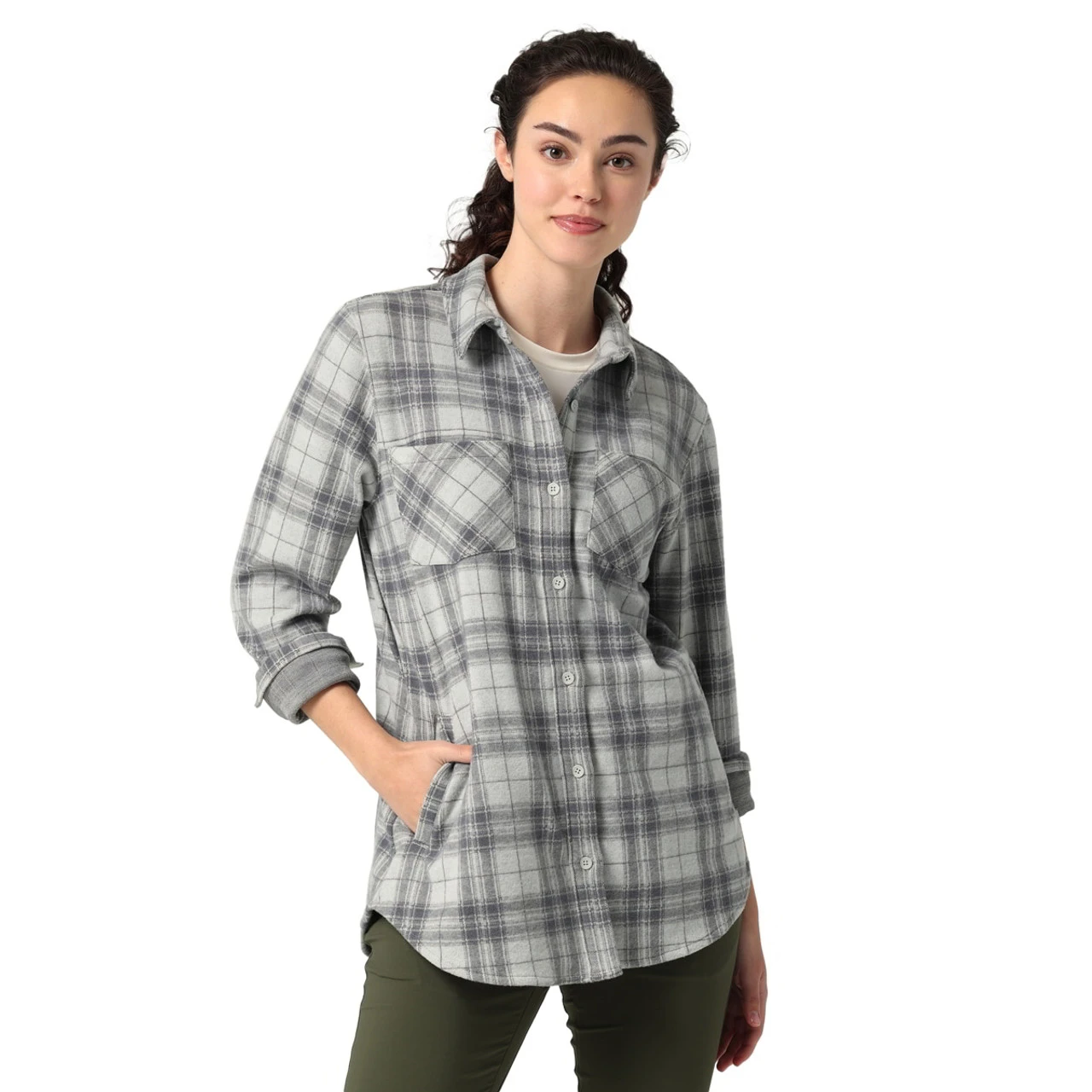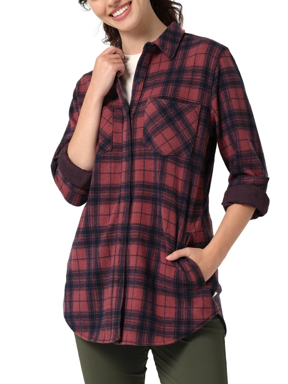Stylish yet practical for adventures in the great outdoors, the ATG by Wrangler⢠women’s campsite knit tunic strikes the perfect balance. It features a longer silhouette in true tunic style and it’s crafted from a comfy performance blend with just a subtle amount of stretch to keep you in your element. This long-sleeve knit top comes with the added benefits of UPF 40 and a moisture-wicking finish that keeps you dry no matter what the day has in store. Plus, there’s plenty of space for your essentials between the two chest patch pockets and the two slip-in hand pockets. Downtown or off the grid, this tunic looks great whether you’re wearing jeans, leggings, or cargo pants. You really can’t go wrong.