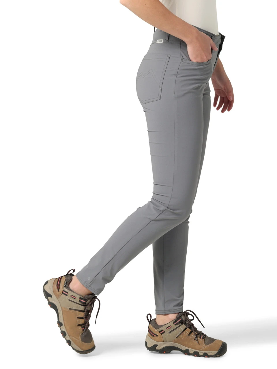 Make the great outdoors your personal playground with the ATG by Wrangler⢠women’s FWDS skinny pants. This five-pocket skinny takes performance to a whole new level, offering four-way stretch for flexibility and freedom of movement. These skinny pants come with a high back waistband for the perfect amount of coverage, a zippered watch pocket, and an outdoorsy take on the iconic âW’ embroidery you love. Best of all, your new favorite skinnies feature UPF 40+ to shield you from the sun and a moisture-wicking finish to help you stay dry even if the forecast has a mind of its own. Wear them with our mixed material shirt or campsite tunic.