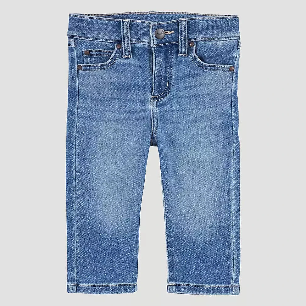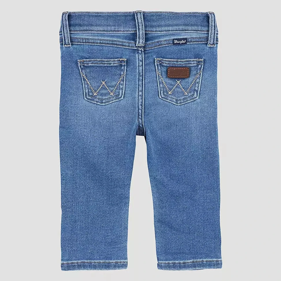 Every cowboy-in-training has to have a classic pair of Wrangler® bootcut jeans. What better way to get him started in the world of kids’ Western wear than with this iconic silhouette? This baby and toddler jeans offer classic 5-pocket styling and our signature ‘W’ embroidery. They’re made from a stretchy fabric designed to keep your baby cowboy comfy. They’ll be ready to lasso the world!