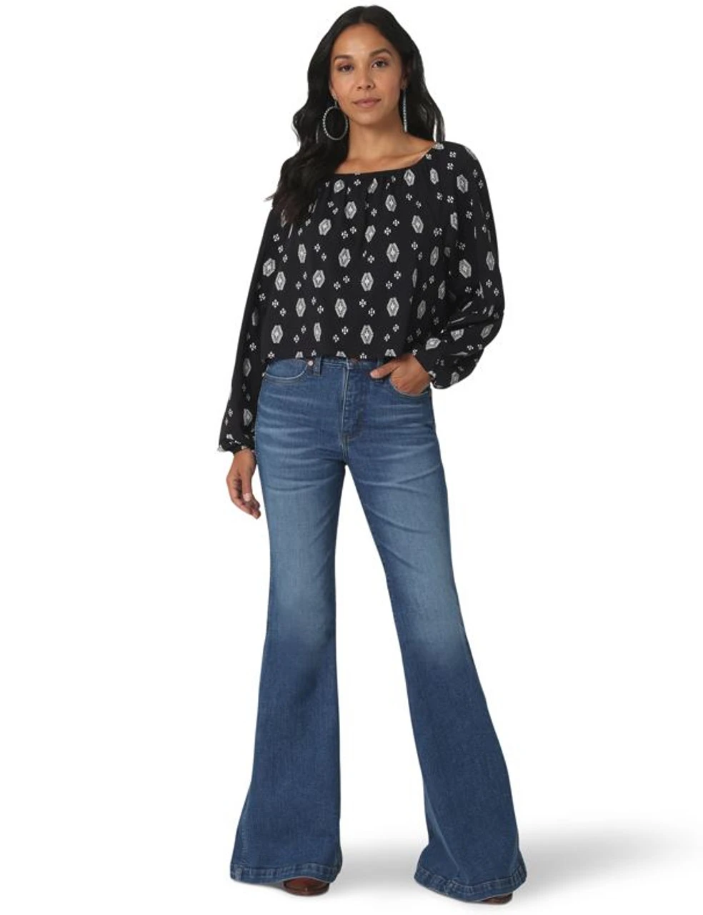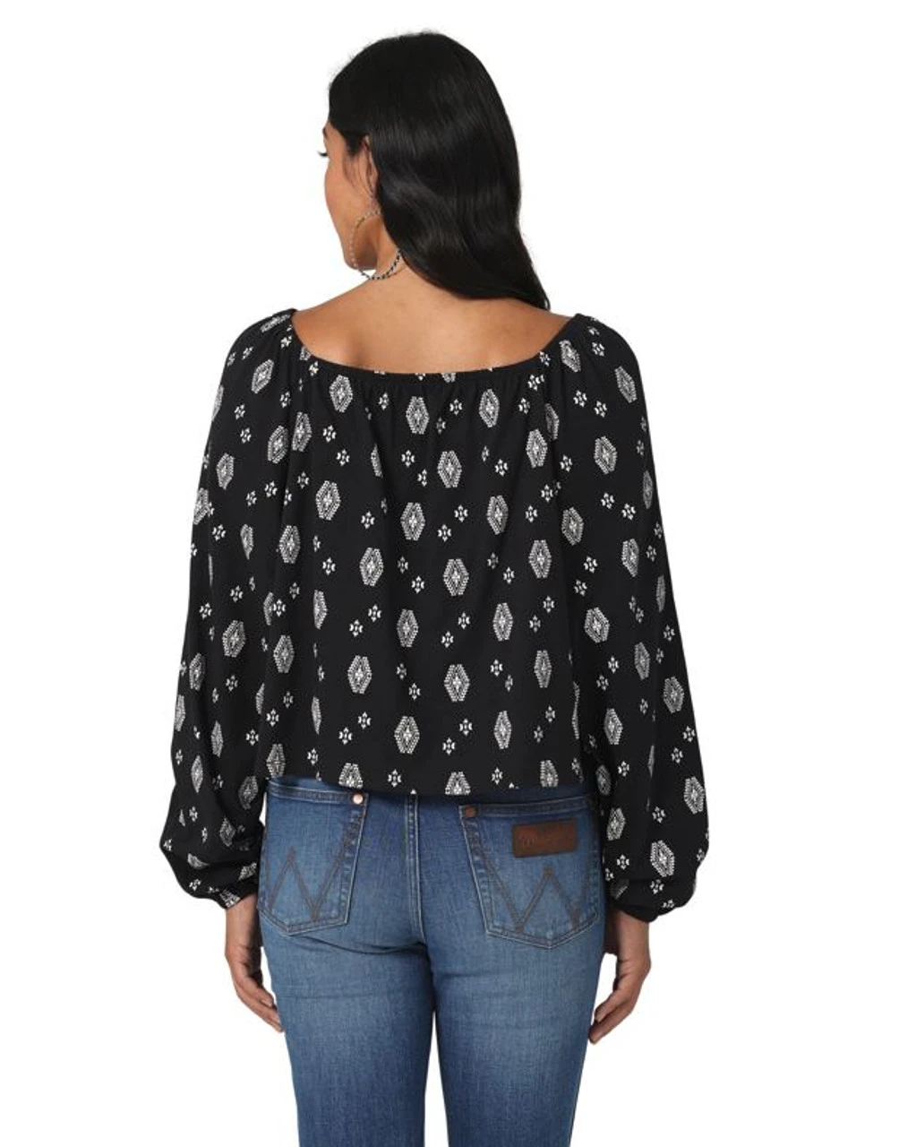 Wrangler Ladies Black Square Neck Long Sleeve Shirt