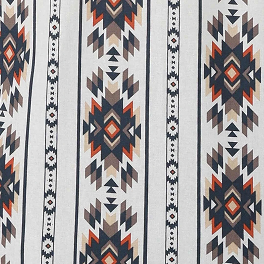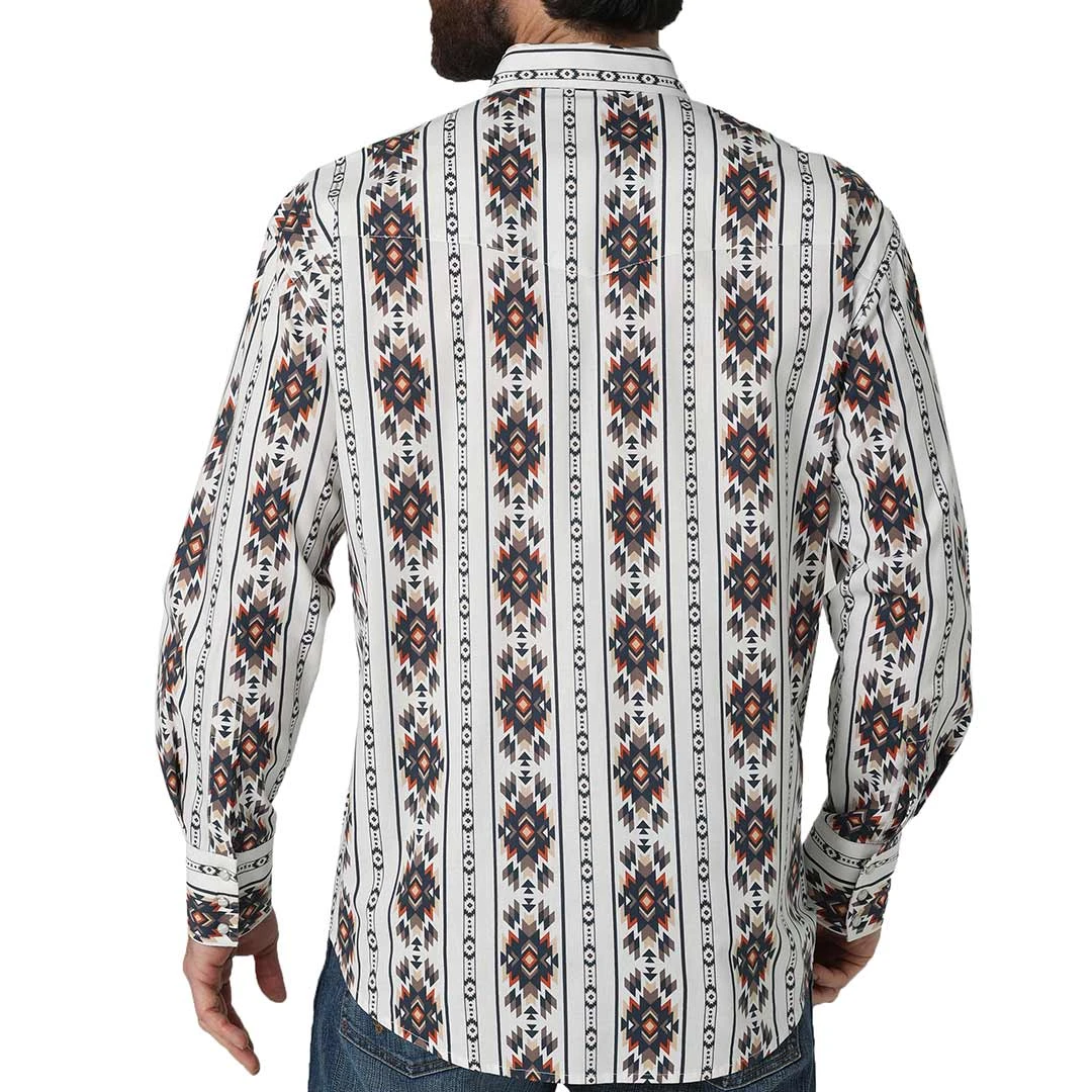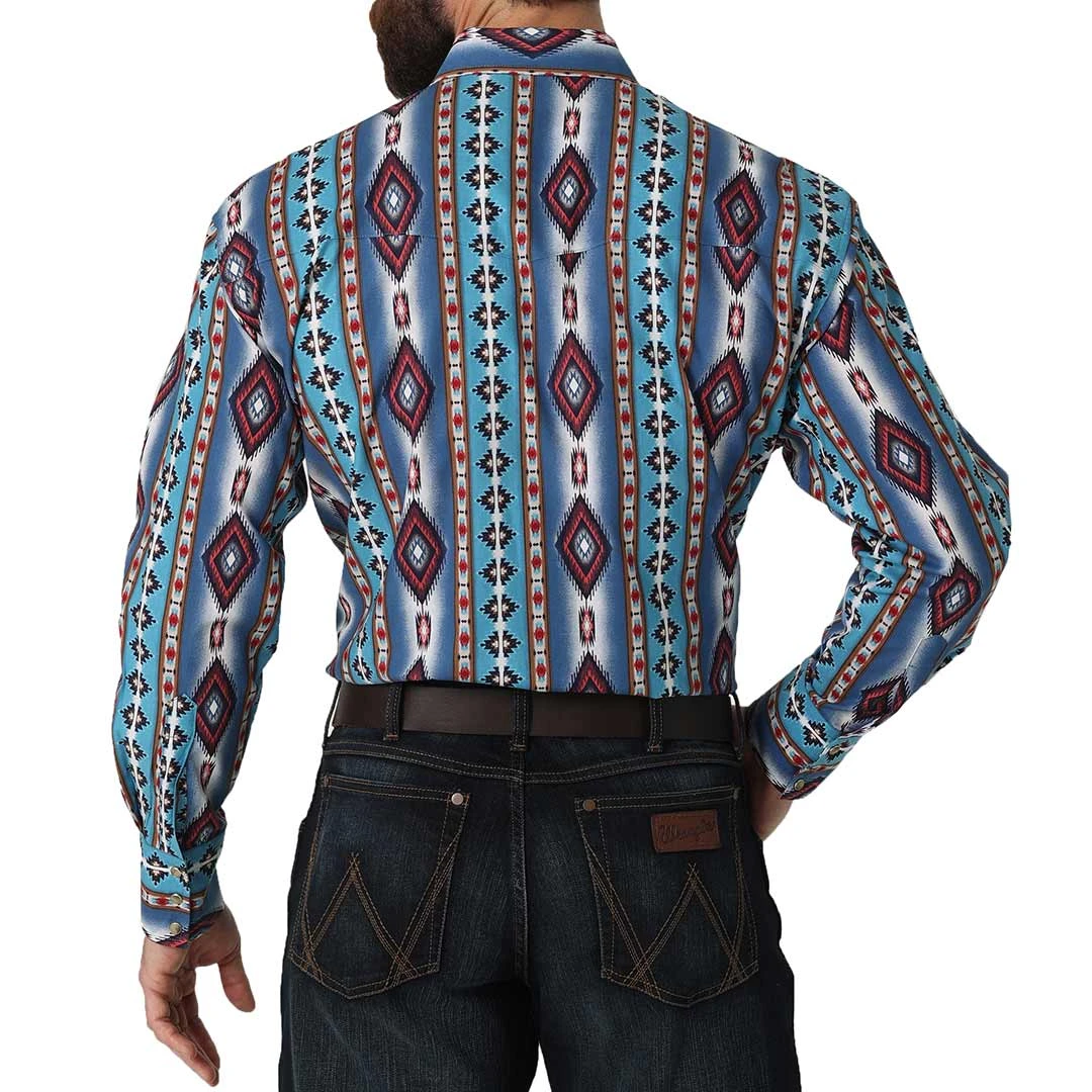 Wrangler’s Checotah has a home in the closets of cowboys around the world. This men’s Checotah long-sleeve western snap Navajo-inspired printed shirt is designed to make a statement no matter the destination. It features a classic fit, a spread collar, pointed yokes, two snap flap pockets with a convenient pencil slot, adjustable cuffs, and a full-length snap closure for the finishing touch. Best of all, it’s crafted from cotton for uncompromising comfort. Look sharp at a moment’s notice by wearing your Checotah shirt with a Wrangler Retro or Cowboy Cut jeans.