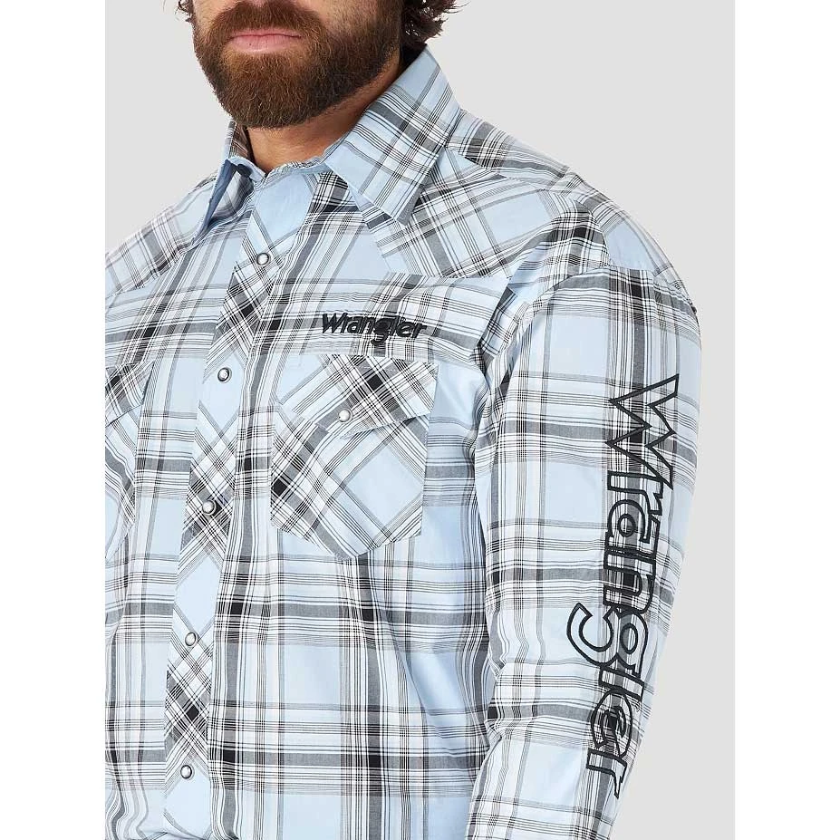 Wrangler Men’s Logo Western Plaid Snap Shirt