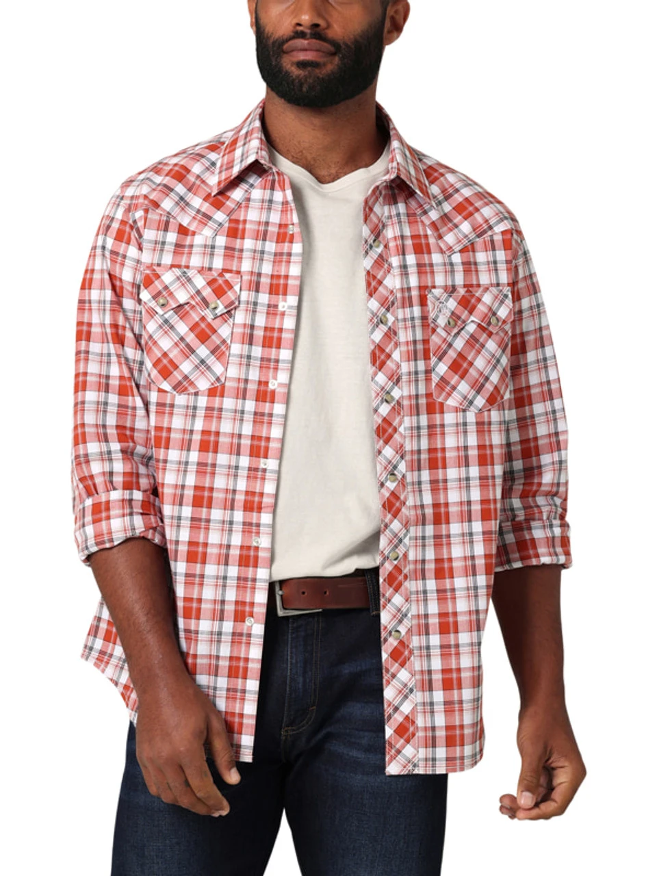 Paying tribute to our Western roots, the men’s Wrangler Retro long-sleeve sawtooth snap pocket western shirt gives the classic style you know a modern look and feel. It comes with all the same details you love, including a spread collar, pointed yokes, and two sawtooth snap flap pockets with embroidery to add a bold element to every outfit. Plus, it features a modern fit and it’s crafted from cotton for comfort and long-lasting durability, no matter how often you wear it. Wear it with a pair of Wrangler Retro bootcut jeans to complete the look for any occasion. Fit: Slim Sleeve Length: Long Front Closure: Snaps Front Pockets: Two spade with snaps Back: Two Point Back Yoke Collar: Spread Cuff: Three Snap Closure 100% Cotton