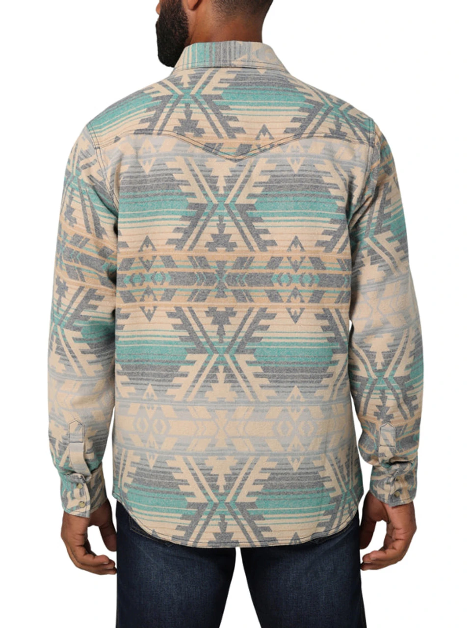 Combining the classic western styling you love with distinctive print to separate you from the crowd, the men’s Wrangler Retro Premium long-sleeve western snap overprint shirt really shines in the details. It comes with pointed front and back yokes, single-needle stitching at the hem, contrast trim, snap cuffs, and two chest flap pockets with snaps. This distinctive take on the western snap you know and love is crafted from cotton for year-round comfort and easy care for years to come. Plus, it features a modern fit. Wear it tucked into a pair of Wrangler Retro jeans or untucked over a simple t-shirt to complete the look from week to weekend. Fit: Slim Sleeve Length: Long Front Closure: Snaps Front Pockets: Two spade with snaps Back: One Point Back Yoke Collar: Spread Cuff: Long 100% Cotton