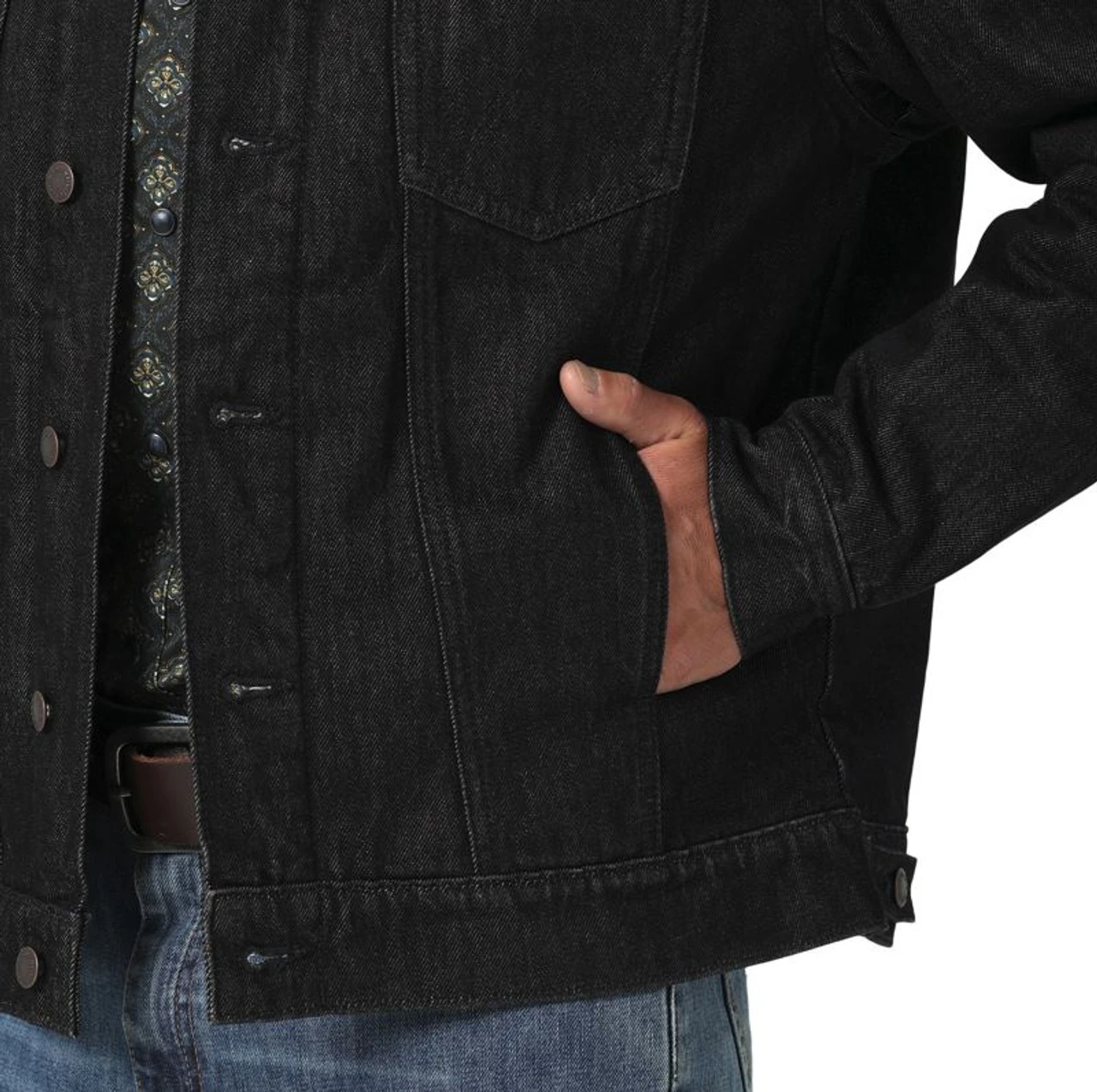 Wrangler Mens Black Sherpa Lined Denim Jacket