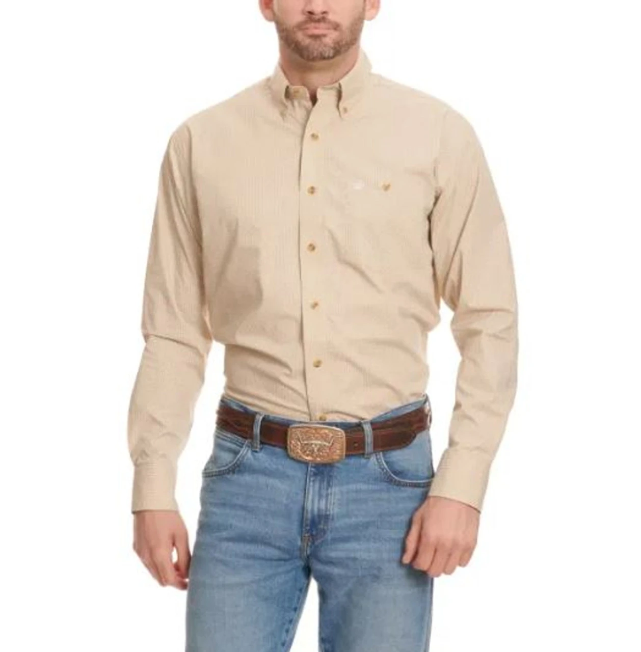 Wrangler Mens Classic Cream Button Down Long Sleeve Shirt