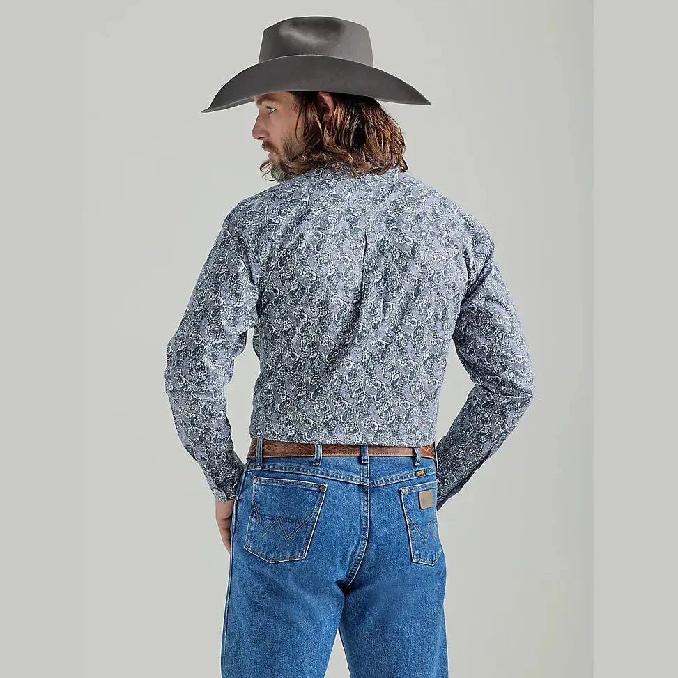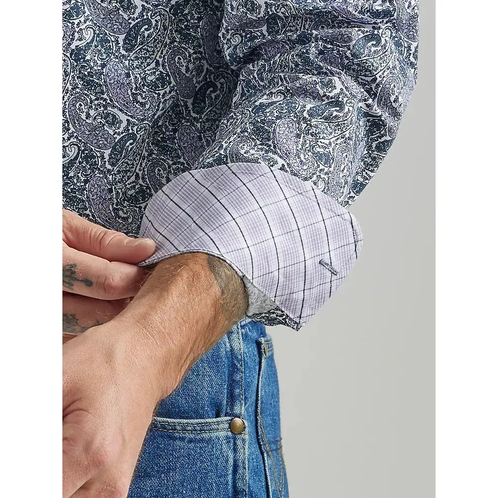 WRANGLER MENS GEORGE STRAIGHT BUTTON DOWN SHIRT – PURPLE GRAY