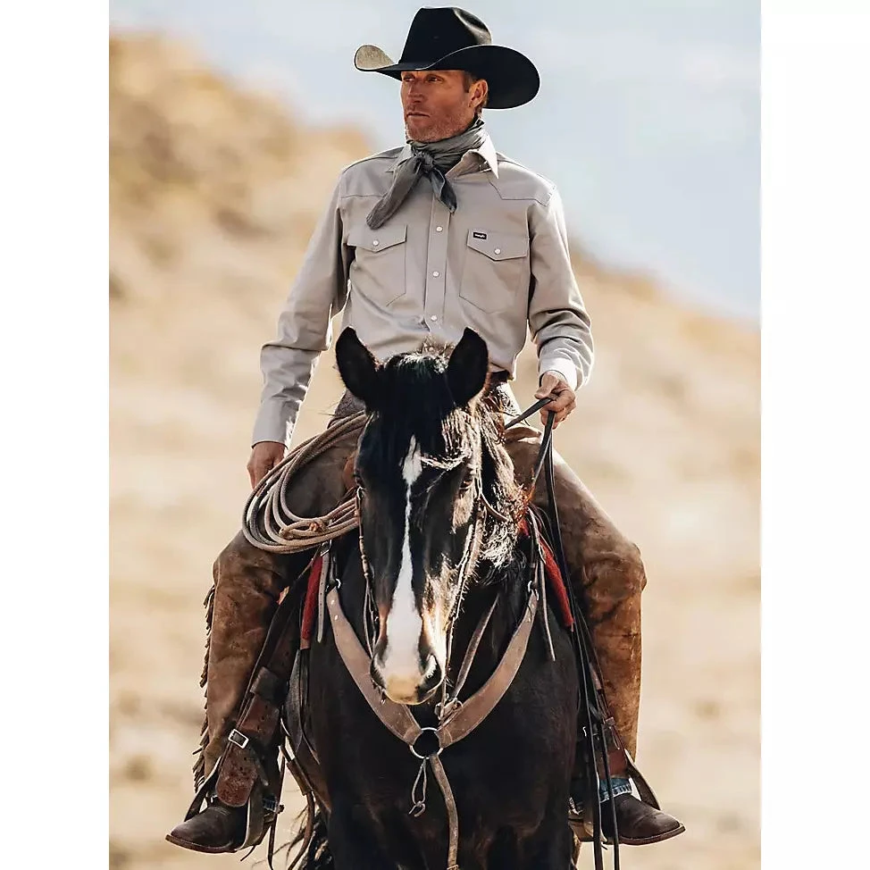 The Wrangler® Advanced Comfort long-sleeve work shirt will be a standout in any situation. It has authentic Western yokes, two authentic snap flap pockets with pencil slot and Wrangler® riser label on the left pocket. W stitching on pocket.