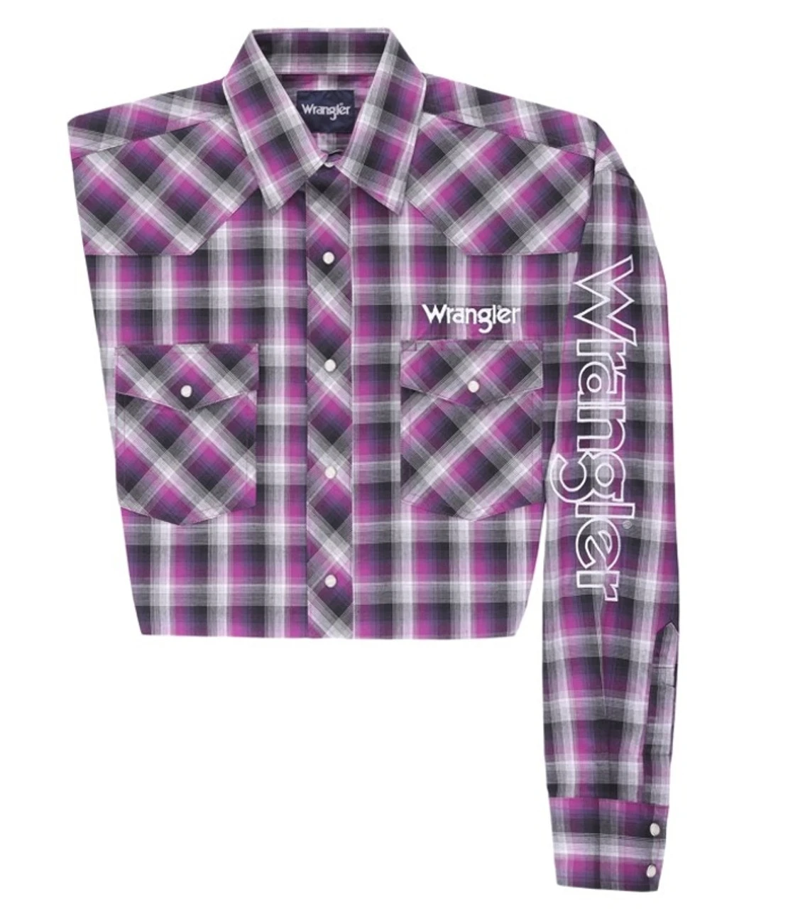 Be the first to review “Wrangler Mens Western Purple Plaid Long Sleeve Western Logo Shirt” Cancel reply