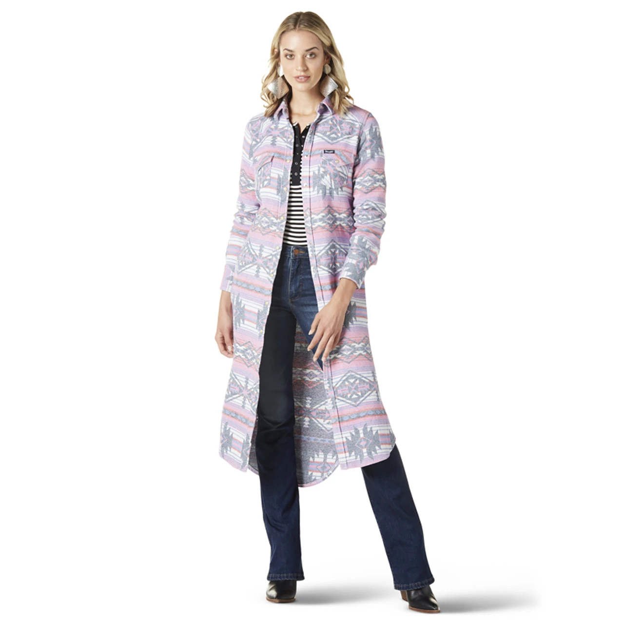 Wrangler Women’s Long Sleeve Duster In Pink/Grey Aztec Print