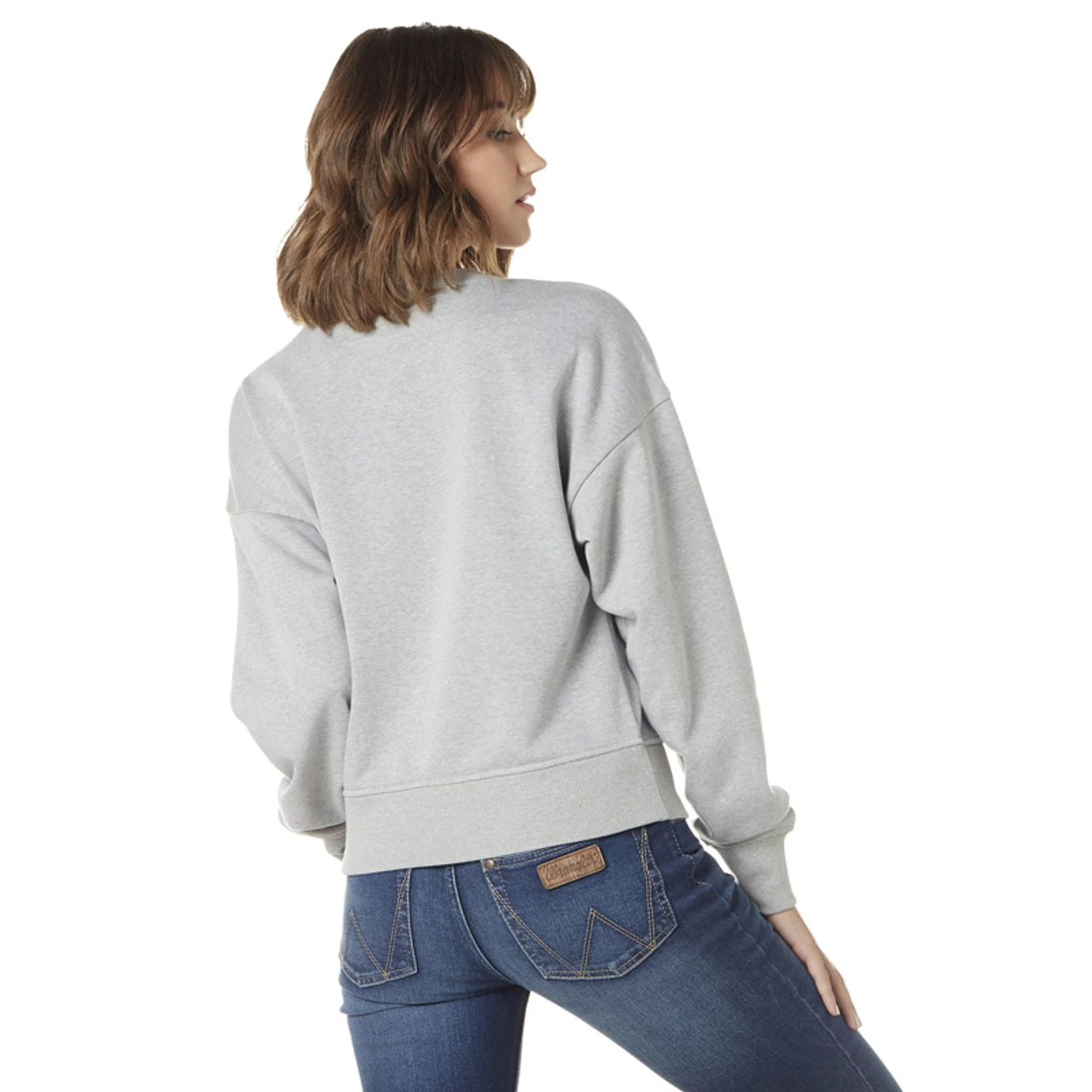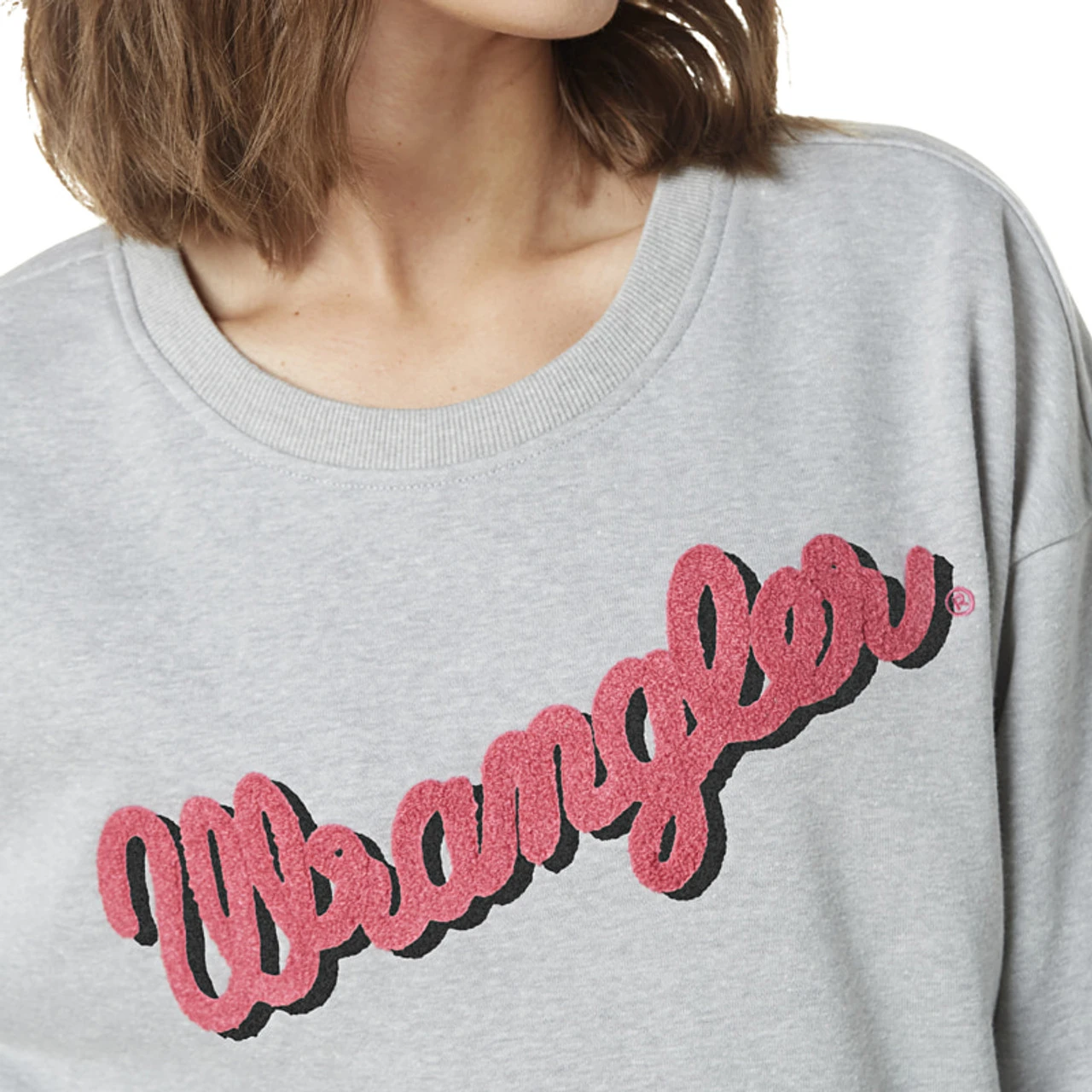 Wrangler Women’s Long Sleeve Logo Sweatshirt In Gray With Pink Wrangler Logo