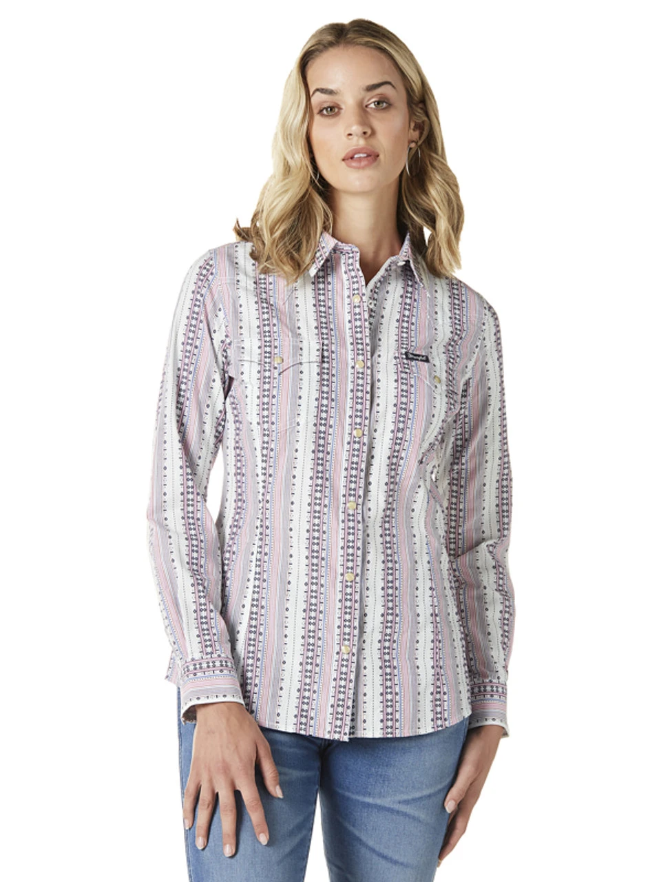 Wrangler Women’s Long Sleeve Western Print Woven Multi Pink Print