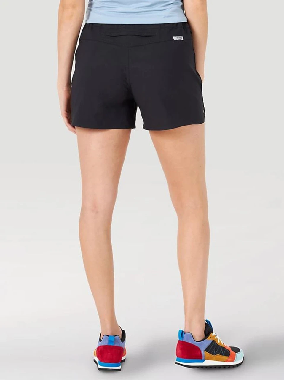 Whether you’re taking on an action-packed water sport or soaking up the sun poolside, dress for comfort with the All Terrain Gear⢠by Wrangler collection. Each ATG style combines a casual, athletic look with performance features that get you through every outdoor adventure in comfort that can’t be beat. The 4″ inseam ATG hydro shorts for women offer a stretchy, quick-drying fabrication that will keep you feeling great the next time you find yourself enjoying a waterside adventure. They’re outfitted with an elastic, drawstring waistband, zippered rodeo pocket, and hidden zippered back pocket to keep your essentials safe.