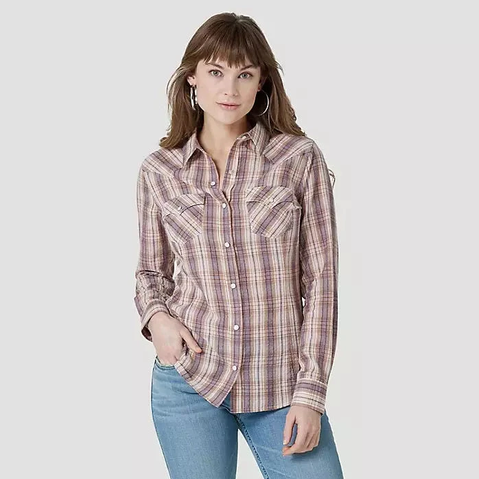 WRANGLER WOMENS RETRO PLAID SNAP SHIRT – PINK MAUVE