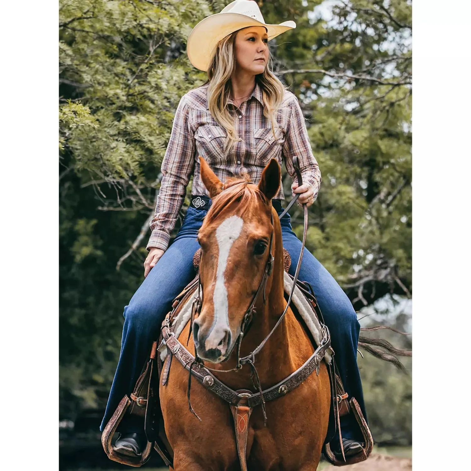 A cowgirl can never have too many snap shirts. Luckily, the women’s Wrangler Retro® plaid western snap shirt will add a pop of color to your current rotation. This shirt comes with all the traditional details you know and love, including pointed yokes from front to back, chest pockets with flaps and snaps, a full pearl snap closure, and snaps at the cuffs. It’s crafted from a soft and comfy cotton blend you can easily wear all year long. This western snap shirt looks strong on its own, but you can also layer it over a simple tee and finish the look with Wrangler® jeans.