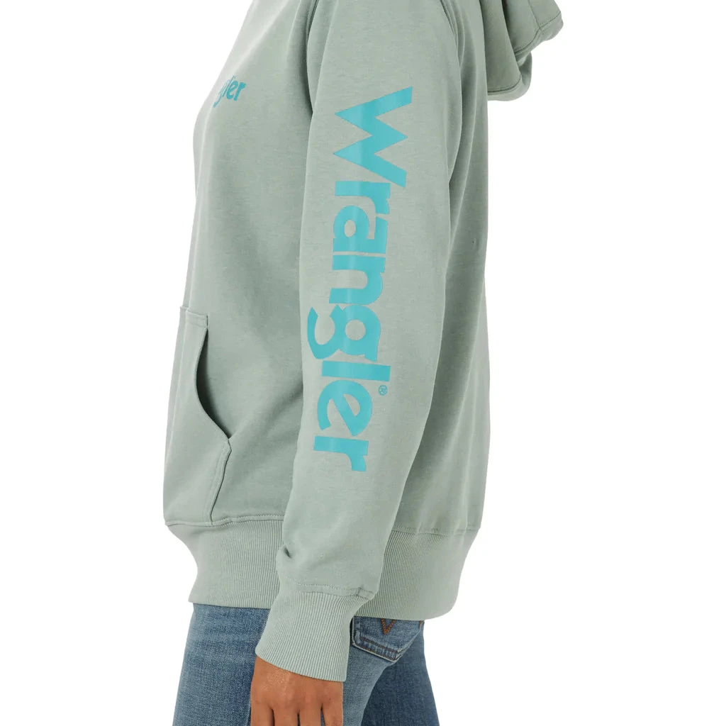 Get cozy with your favorite brand in the Wrangler® Logo Long-Sleeve Hoodie for Ladies.
